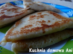 4. Smarujemy naleśniki i składamy w trójkąt. Smażymy na rumiano.