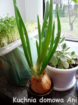 A poniżej mój parapetowy ogródek, zielona cebulka i rzeżucha :)