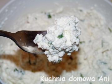 1. Ser rozgniatamy widelcem, dodajemy do niego odpowiednią ilość jogurtu (w zależności od pożądanej konsystencji).