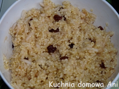 1. Kaszę płuczemy w wodzie. Zagotowujemy szklankę wody, wrzucamy kaszę i gotujemy ok. 20 minut.