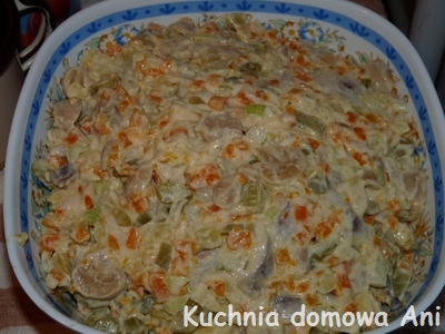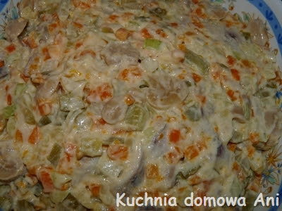 5. Wszystkie składniki mieszamy, dodajemy majonez i doprawiamy pieprzem.