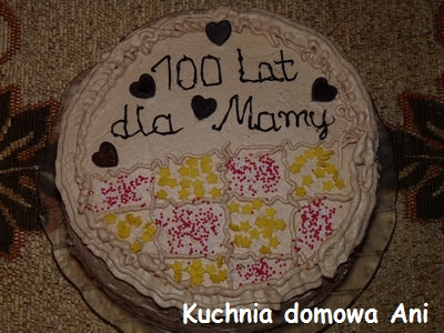 Tort pieczony specjalnie na urodziny mojej mamy według własnego pomysłu. Wyszedł naprawdę pyszny i zapisałam go do mojego zeszytu bo z pewnością jeszcze kiedyś go upiekę :)