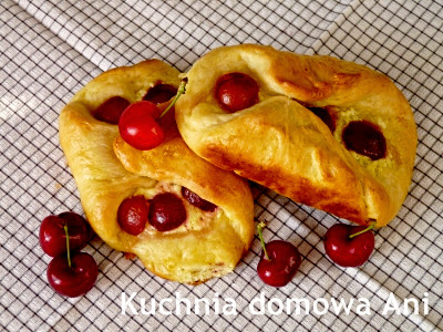 4. Gotowe porcje włożyć na 10-15 minut do lodówki, potem posmarować roztrzepanym jajkiem. Piec na blaszce wyłożonej papierem w 200 st. C. Piec 30-50 minut (w zależności od piekarnika - u mnie piekły się 50 minut). Ciasto powinno być złociste i chrupiące.