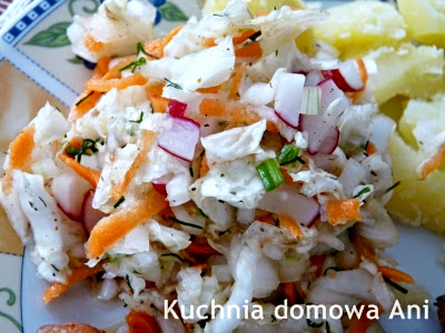 7. Sos dodać do sałatki i delikatnie wymieszać.