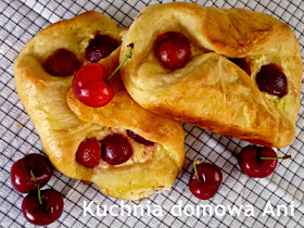 4. Gotowe porcje włożyć na 10-15 minut do lodówki, potem posmarować roztrzepanym jajkiem. Piec na blaszce wyłożonej papierem w 200 st. C. Piec 30-50 minut (w zależności od piekarnika - u mnie piekły się 50 minut). Ciasto powinno być złociste i chrupiące.