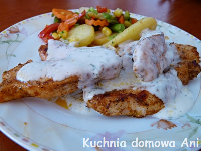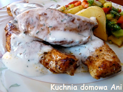 To mój ostatni wpis przed naszą krótką wakacyjną przerwą. Wyjeżdżam na krótki zasłużony wypoczynek - po raz pierwszy z córeczką 700 km od domu... Mam nadzieję, że przetrwamy jakoś podróż...A zostawiam Was z szybką propozycją na obiad, takie mięsko świetnie smakuje z warzywami na patelnię. Do mięsa podajemy także sos tzatziki.