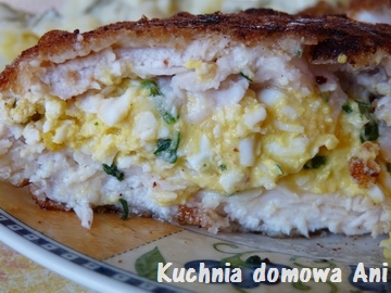 2. Opanierować w mące, a następnie w roztrzepanym jajku z mlekiem.