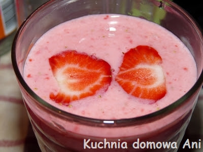 Truskawki z maślanką lub kefirem i miodem dokładnie miksujemy, przelewamy do szklanek i podajemy!