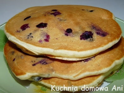 Tak mi posmakowały te naleśniki, że próbuję teraz z różnymi dodatkami. Na pierwszy ogień poszły czarne borówki, których mam trochę zamrożonych. Wyszły bardzo dobre i uroczo piegowate :)